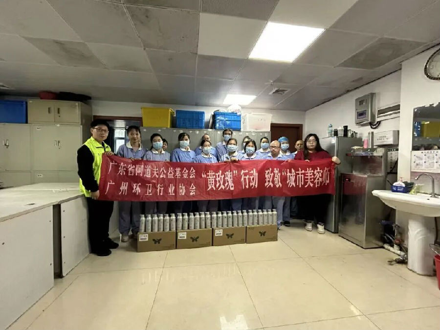 2025年入冬以来,广州环卫行业协会与广东省阿道夫公益基金会联合开展关爱“黄玫瑰”公益行动,为奋战在广州市各区的逾万名一线环卫清洁工人送去价值70多万元的爱心洗护礼包,以实际行动传递社会关爱,致敬“城市美容师”的辛勤付出。