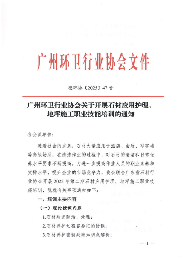 穗环协【2025】47号(广州环卫行业协会关于开展石材应用护理、地坪施工职业技能培训的通知).zip