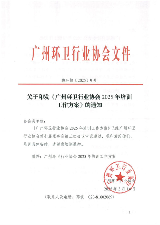 穗环协【2025】9号(关于印发《广州环卫行业协会2025年培训工作方案》的通知)