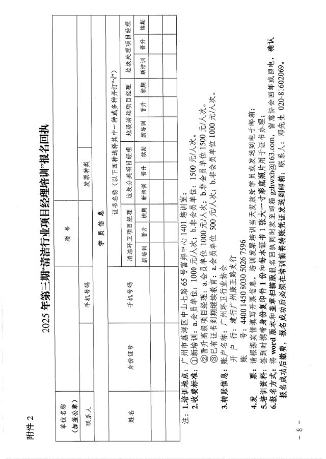 穗环协【2025】50号(广州环卫行业协会关于举办清洁环卫高级管理师和项目经理培训班的通知).zip