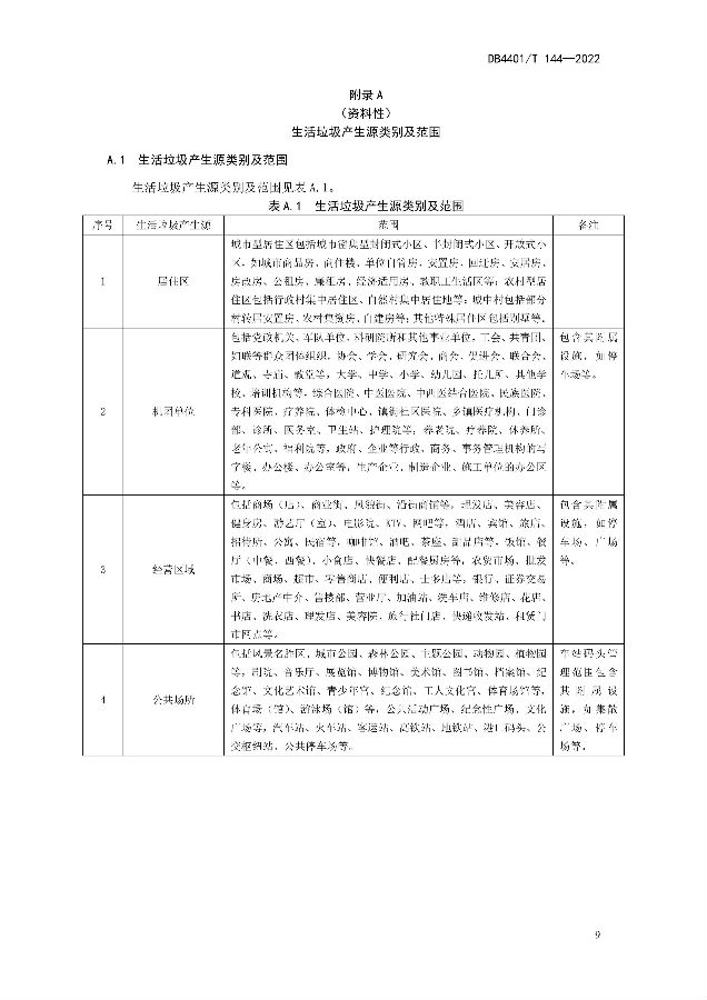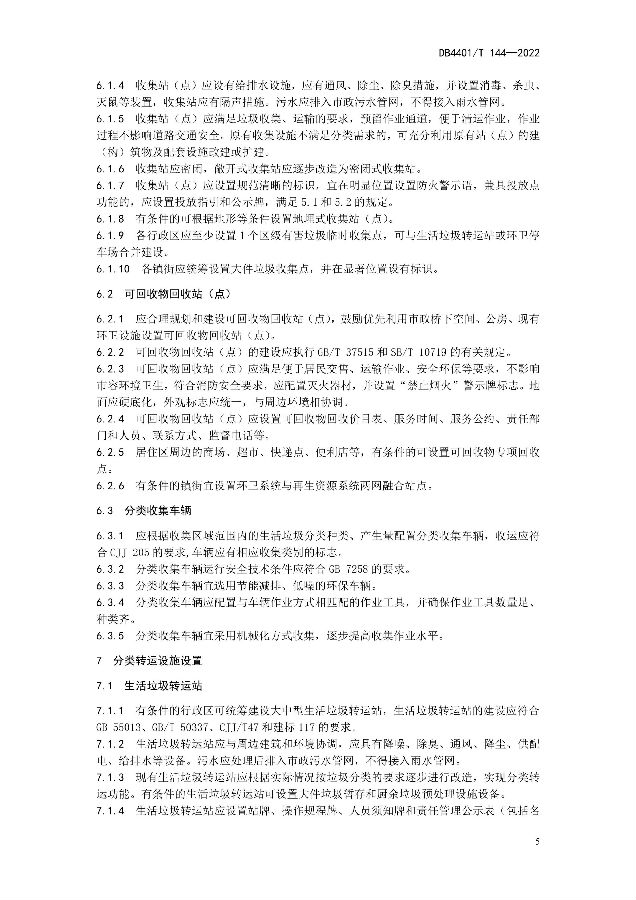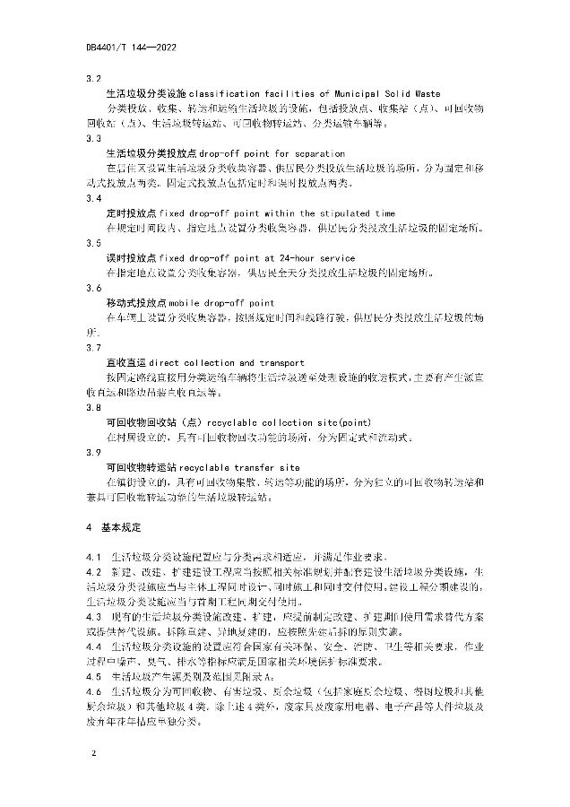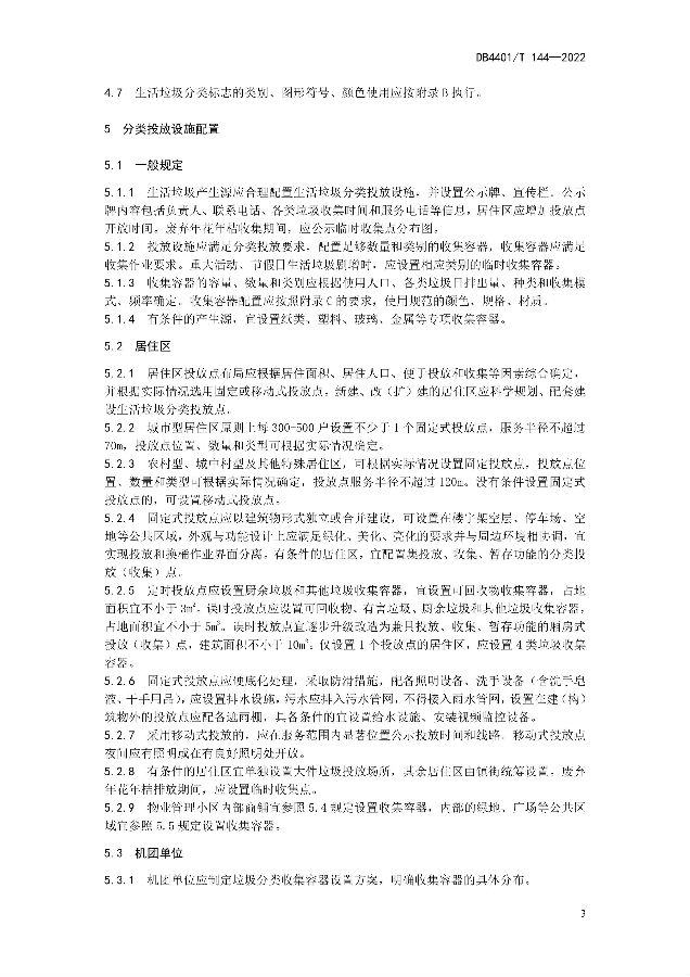 DB4401 T 144-2022 生活垃圾分类 设施配置及作业规范