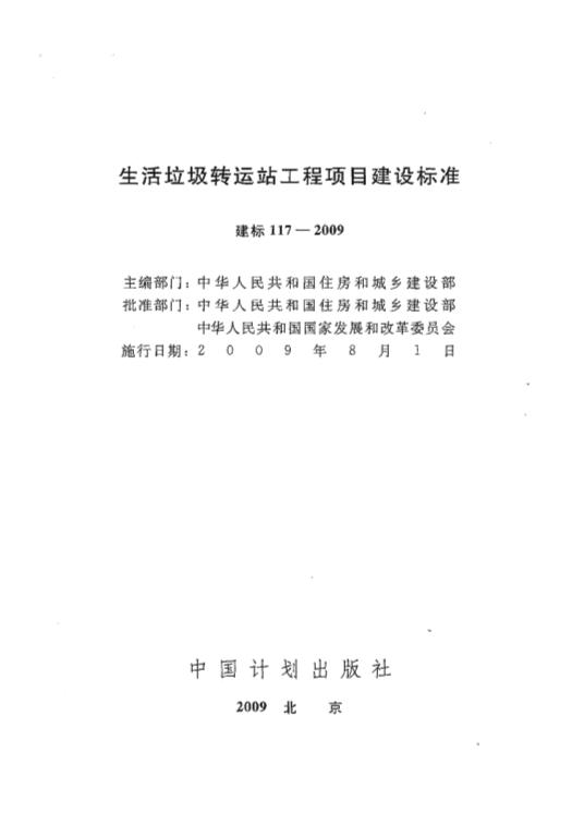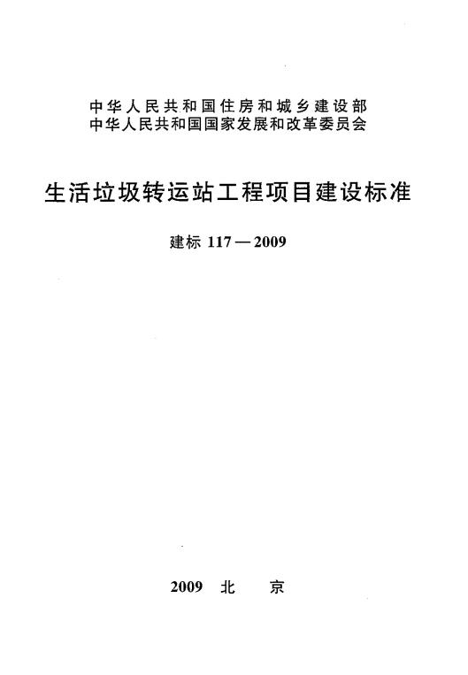 建标_117-2009生活垃圾转运站工程项目建设标准